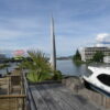 波止場前の広場。Cullyはジャズにクラシックと音楽祭があり、私が訪れた時には、数日前まで開催されていたCully Jazzの後片付けの最中。そして右側の石碑、写真では木々の葉で見えにくいですが、