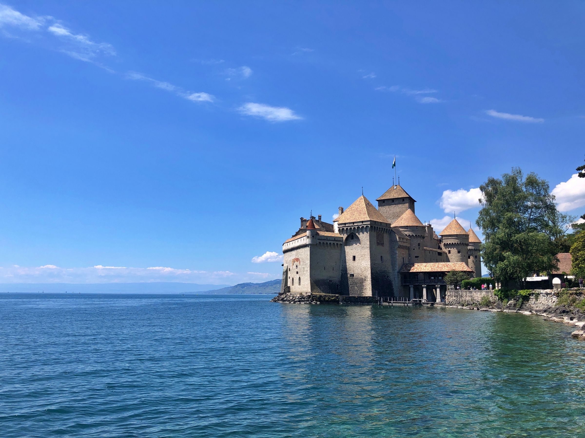カーブした後に見えてくるのがChâteau de Chillon・シヨン城!