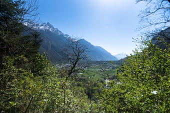 高台なので視界が開ける。右側に川がちょっと見える。東側、川を挟んでLavey-Village。左側の丘に、Fortification d’Arzillier(Dufour)、Dufour将軍が19世紀に建設した要塞があるわけだ。そして丘の右側をよく見ると、