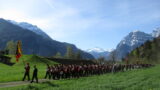 途中にあった建物、これは学校かなあ?バスケゴールがあるし。地図では確認できず。川沿いの小径を歩くも結局218番の印も見つけられず。スイス側に戻り、217番を目指し、川に架かる橋へ。