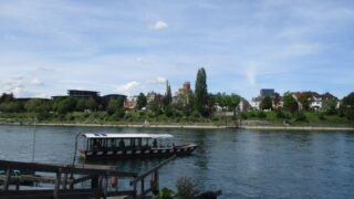 Basel (2) ライン川の渡し舟 2025/10/13 スイスの建築物, 日帰りハイキング, 鉄道・バス・ロープウェー川岸に出ました。対岸はGrossbasel。船着き場に下りていきます。Baseler Fährenと呼ばれる...