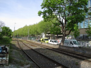 線路が見えてきました。貨物運搬用の引き込み線です。