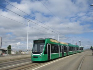 トラムとすれ違います。バーゼルの中心から出ているこのトラム、半分ほどはKleinhuningen止りですが、半分ほどは国境を越えてドイツ内のWeil-am-Rhein鉄道駅まで直通してます(翌日はそれに乗った)