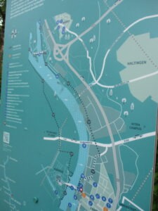 現在はライン川が独仏の国境線になっていて、現在我々がいるのが地図の下の端。川を北上して橋を渡ってフランス側に渡り、反対側の岸を南下してぐるっと一周する散歩道が設定されていて、