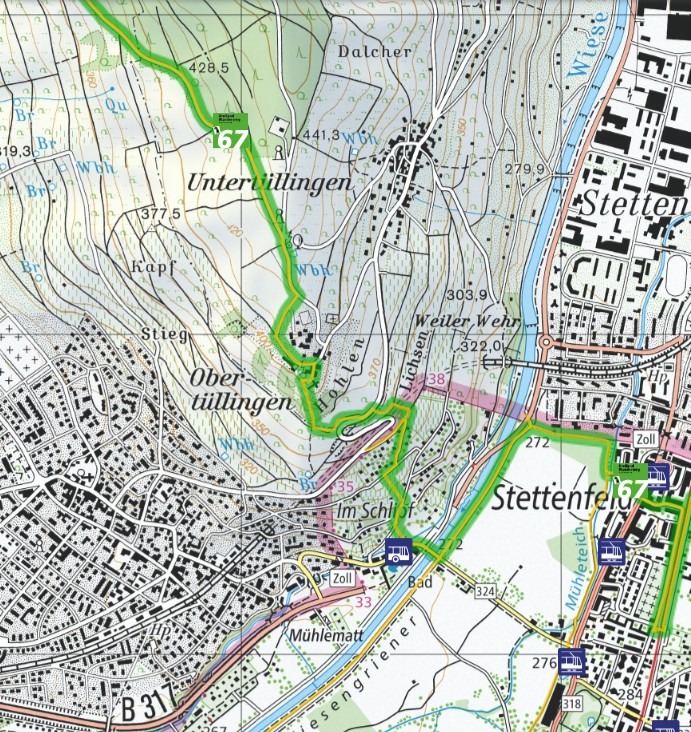 またOstlingenを経由する別のロングトレイルWestweg。これもライン川と大体平行に南北に歩きますがSchwarzbald=黒い森地帯の、ブドウ畑がメインの道よりもっと自然の中(ワイルド?)を歩く部分が多いのかも。でもちゃんと町と町をつないでくれてます。Pforzheimからバーゼルまでの12ステージ290キロのロングトレイルです。