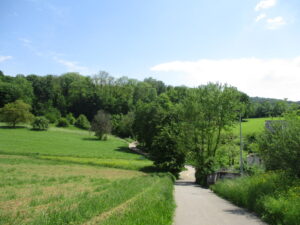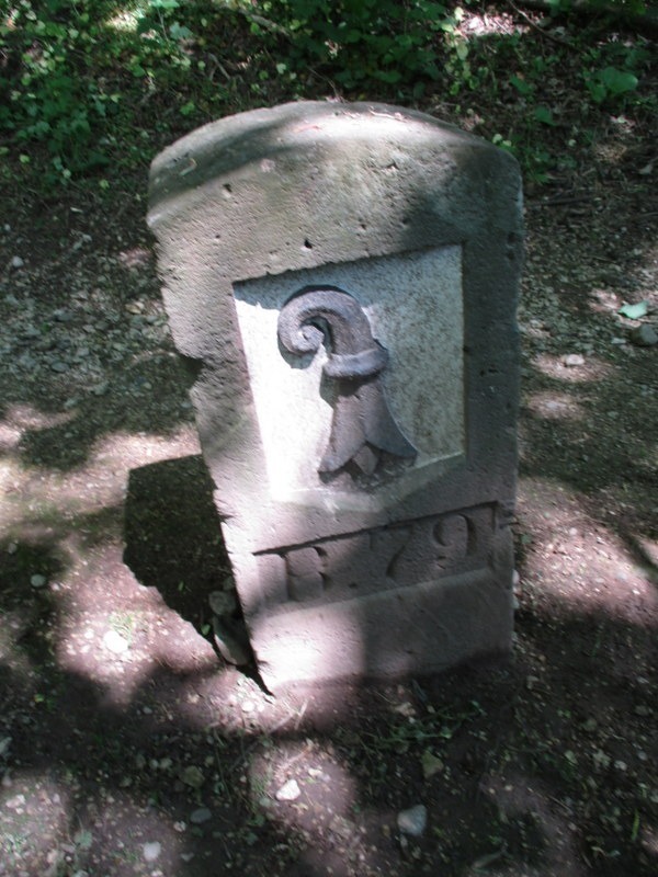 この近くには80番の国境石があるはずですが、見つけられませんでした。1720年の設置でバーゼルとvon Reichenstein家との間の境だそうです。Reich von Reichenstein家は元々はバーゼル司教に仕えていた貴族で、Intrigenの町を治めていましたが、16世紀の宗教改革でバーゼルがプロテスタントに改宗したのに対しカトリックに留まり、これがバーゼルとの分離、境界線となったのかと思われます。
