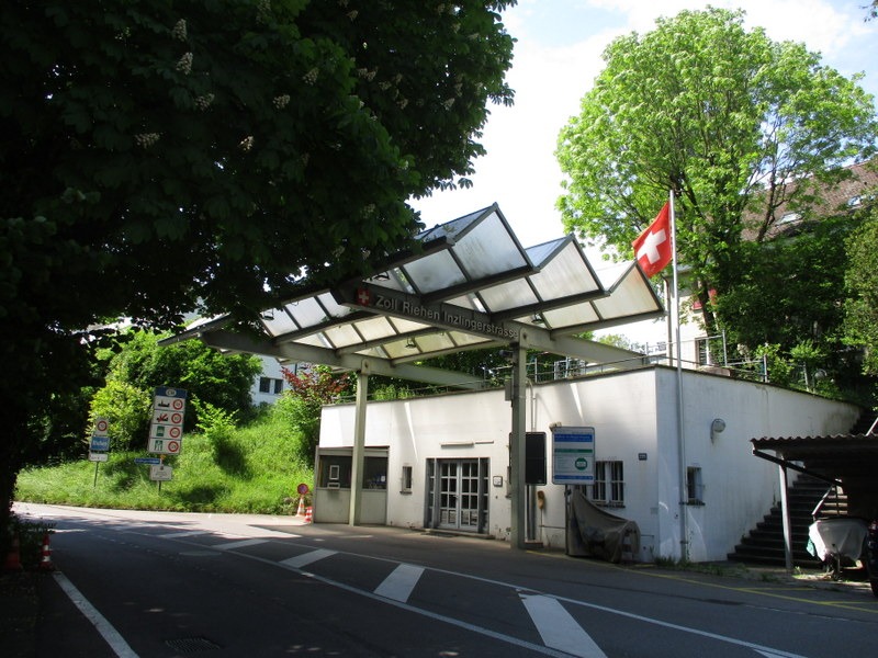 「Riehen, Inzlinger Zoll」。スイス側の町Riehenとドイツ側のInzlingenとの間にある国境検問所。