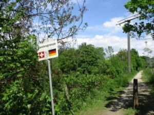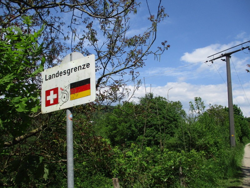 Intrigenの町までは行かないけど、2分弱で国境。道が通じている国境の場合にはこのLandesgrenzeの看板が付いていることが多いようです