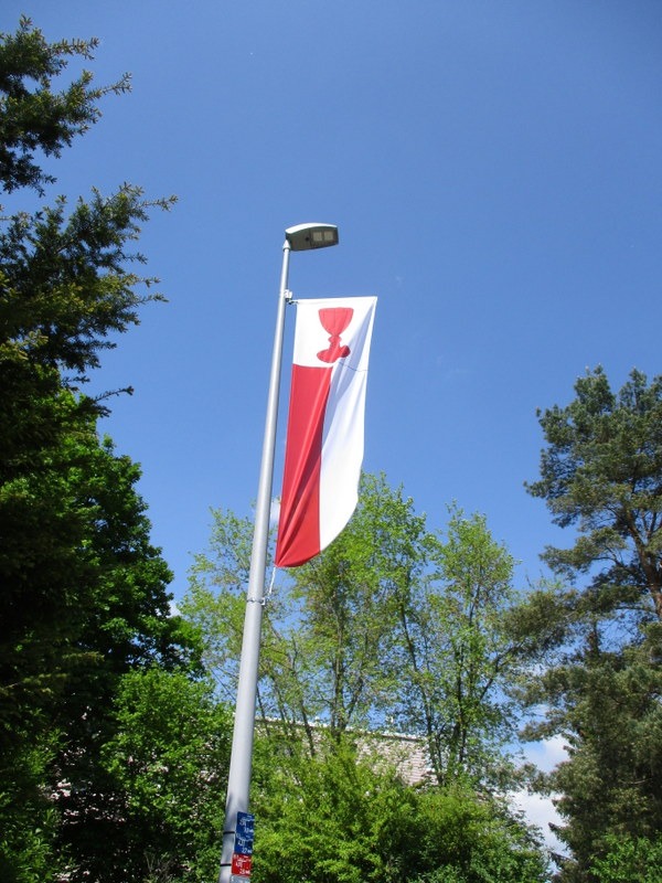 前回見た境界石にあった白地に赤の杯。現ドイツのVon Wolhusen家にさかのぼる、Bettingenの紋章。Bettingenは1513年にバーゼルがWolhusen家から「購入」し、これにより、その後Bettingenがバーゼルと共にスイスに属することになりました。