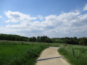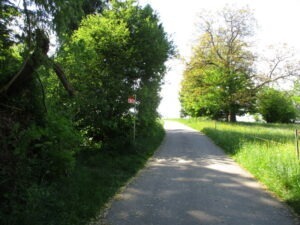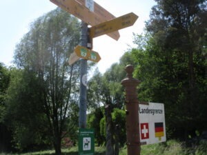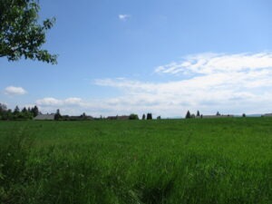 向こう側に、水平線状に見えるのはドイツのNeufeldの家々でしょう。国境線に沿うように並んでます。今いる所が少し高くなってるらしく、家々の上半分がちょこっと見えるだけですが、この先に町が広がってるらしい。