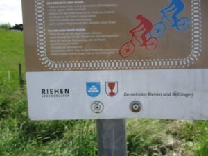 Riehen(青地に浮かぶ3段の屋根瓦)とBettingen(白地に赤の杯)のマーク。