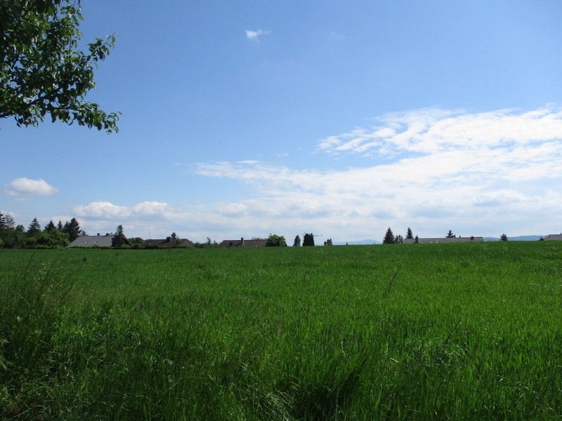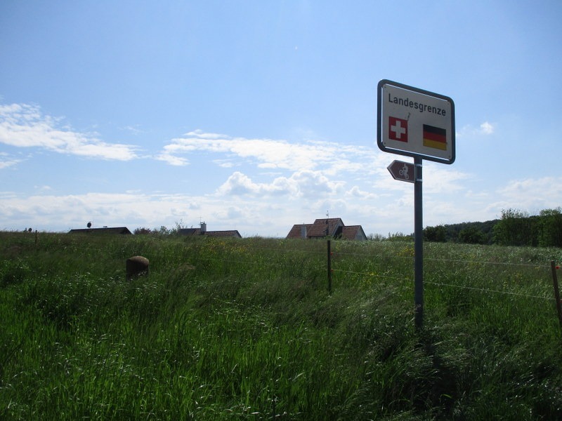向こう側に、水平線状に見えるのはドイツのNeufeldの家々でしょう。国境線に沿うように並んでます。今いる所が少し高くなってるらしく、家々の上半分がちょこっと見えるだけですが、この先に町が広がってるらしい。