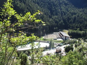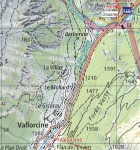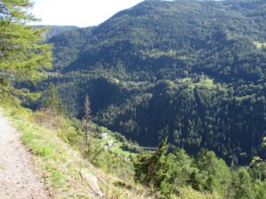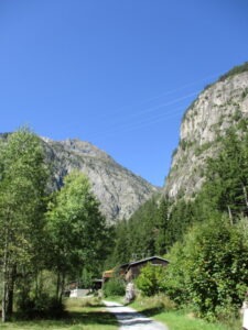 左側に下りてくとChatelard Village。結果論ですが、Chemin des dilligencesが示すVillage経由の道の方が緩やかな下りだったようです。