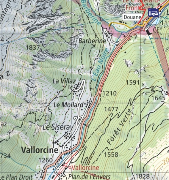Barberine川にかかる小さな橋を渡るとフランス。この辺りは国境石の類は全然ないんですよね。