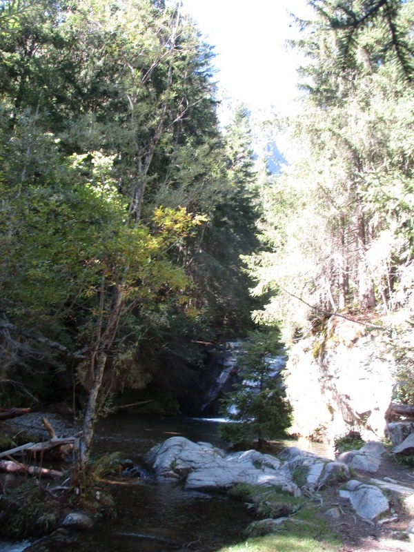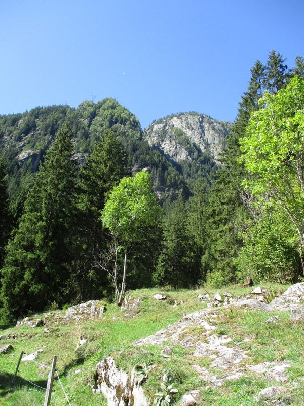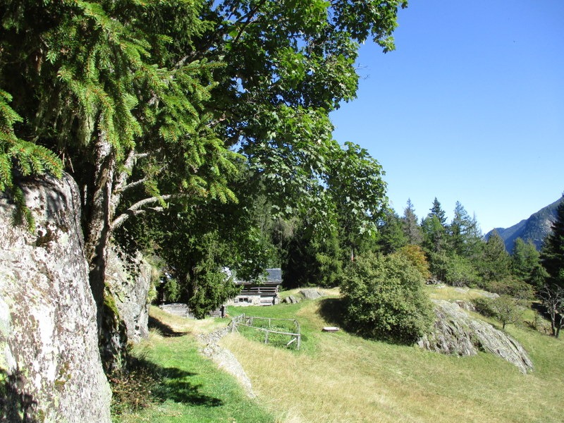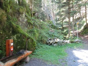 しばらく行くと、地図ではTete du loup(オオカミの頭)の文字のすぐ下にある分岐に来ました。水場があり、ここから更に登る道と、Chatelardへと下る道に分かれます。下る道をとると
