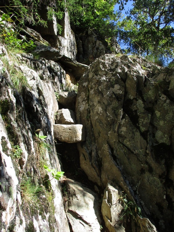 降りた個所を振り返った所。やれやれようやく大変な箇所は過ぎたかと思うとまたまた出てくる下りの難所。いや、これ、登りで使うにしてもかなり大変。