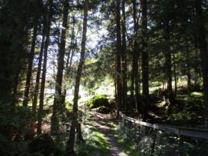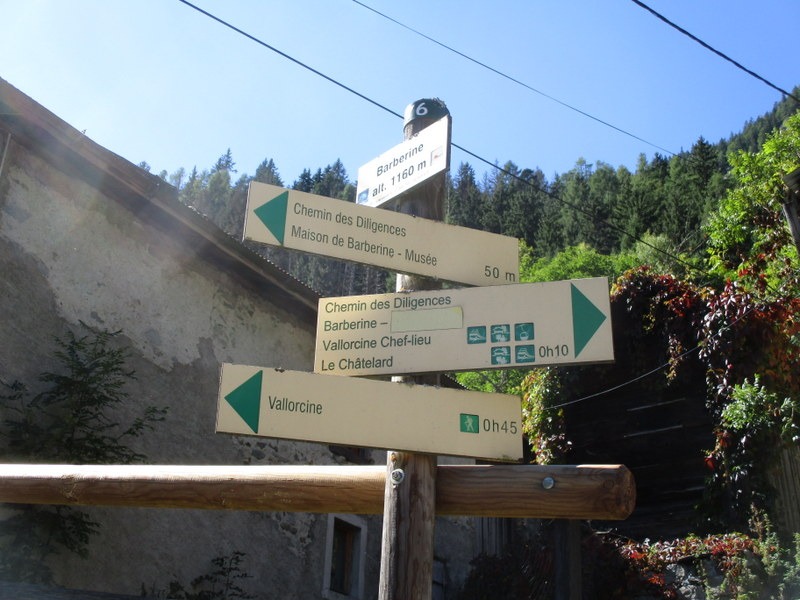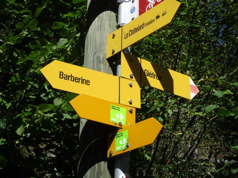 ようやくしっかりとした道に出たら、まだまだ続く、Chemin des dilligencesの緑のマーク。駅には寄らずにそのままBarberine(フランス)へ向かいます。
