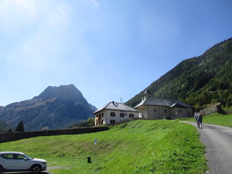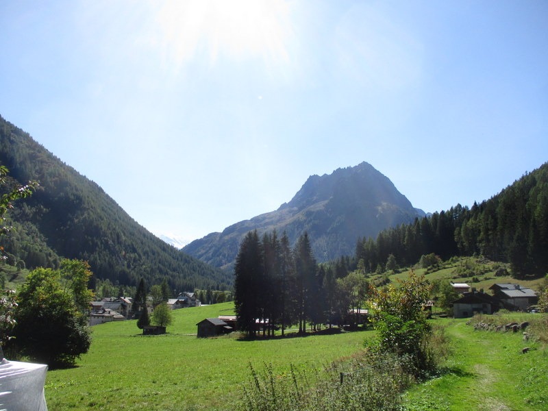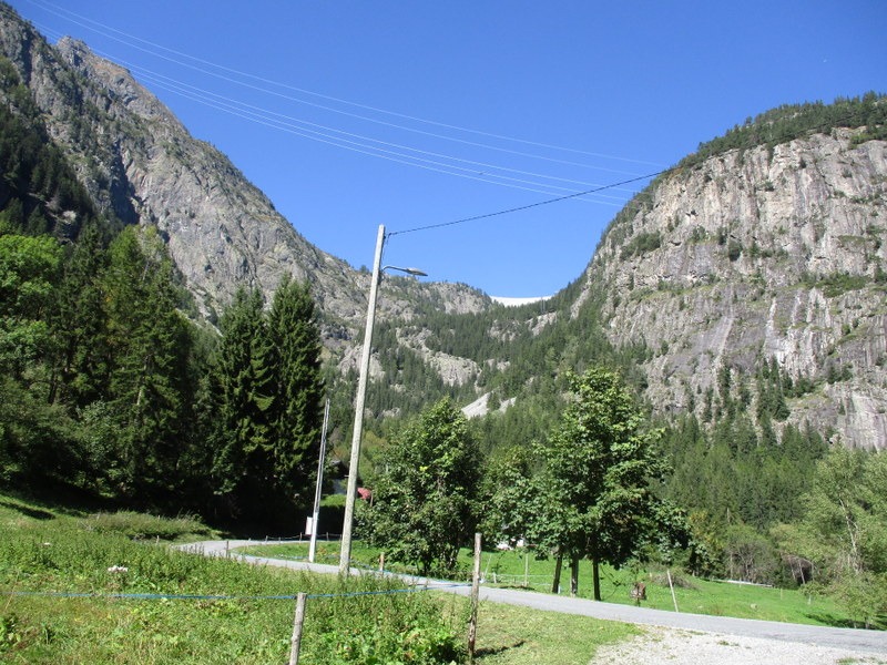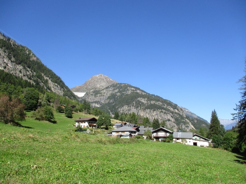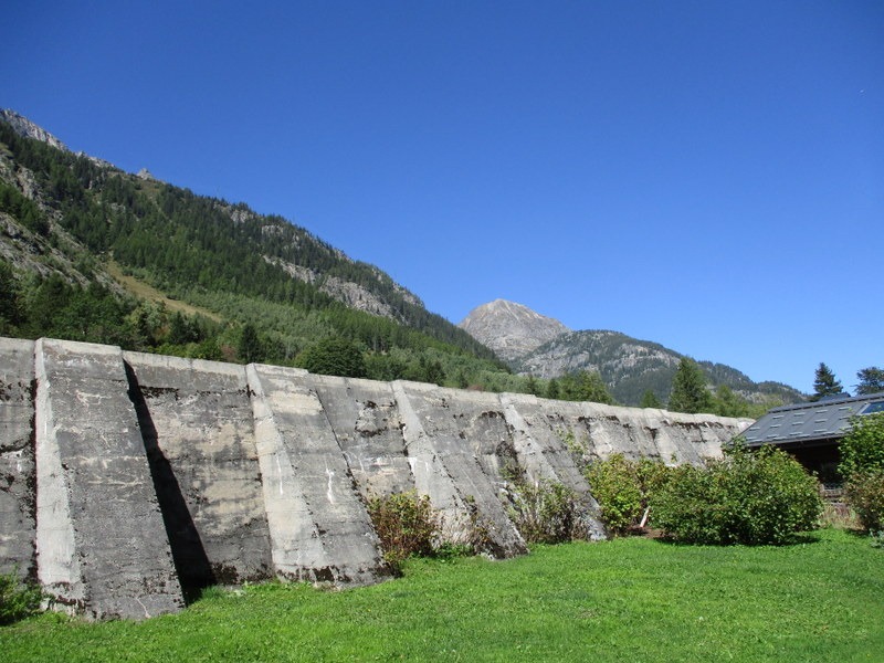Le Mollardの集落の横。中央左寄り、Emossonダムの壁が見えます。