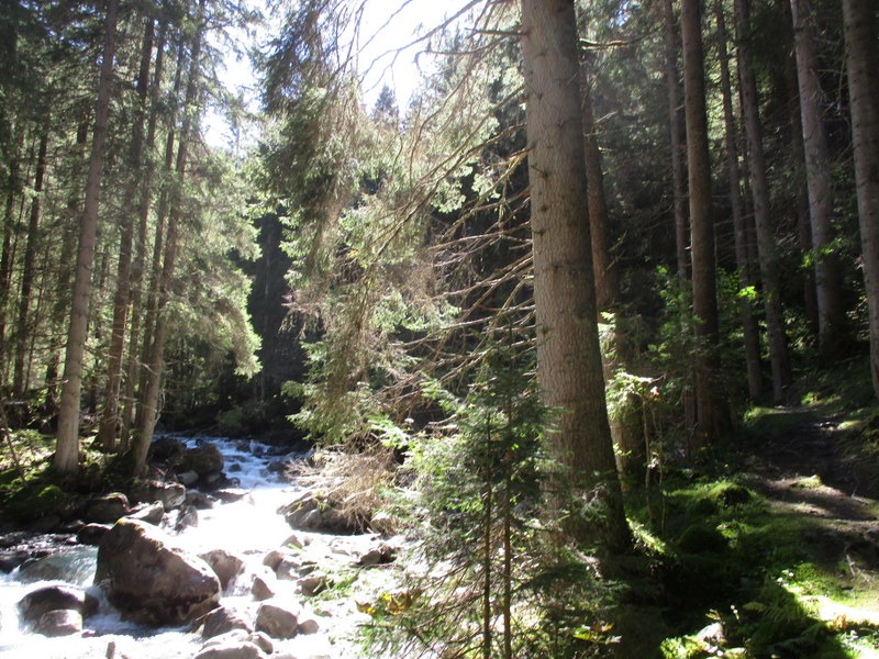 さてBarberineの集落からが問題でした。前回の最後の写真で道標をお見せしましたが、それ以外のハイキング道を示す印が見当たらず、適当に集落を通り抜け、車道を避けて川沿いを通る道を自力で見つけ歩いています。川はL’Eau Noir(黒い水)という名で、Tretien谷をTretienの町の下あたりまで流れ、Tretienの町の後はTretien川と名を変えています。この川沿い歩きは気持ちの良いもので、