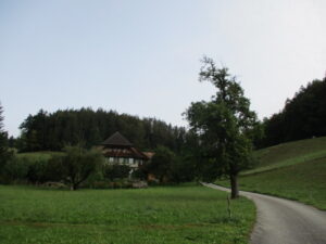 ここからしばらくは公共交通機関がない部分を歩きます。川沿いの町Lützelflühからはすぐに緩やかな上り、