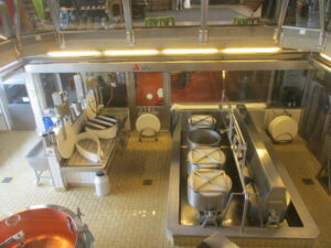製造過程の見学(上から見下ろすだけ)やチーズの販売コーナー、有料で自分でチーズを作る体験やガイドツアーも。