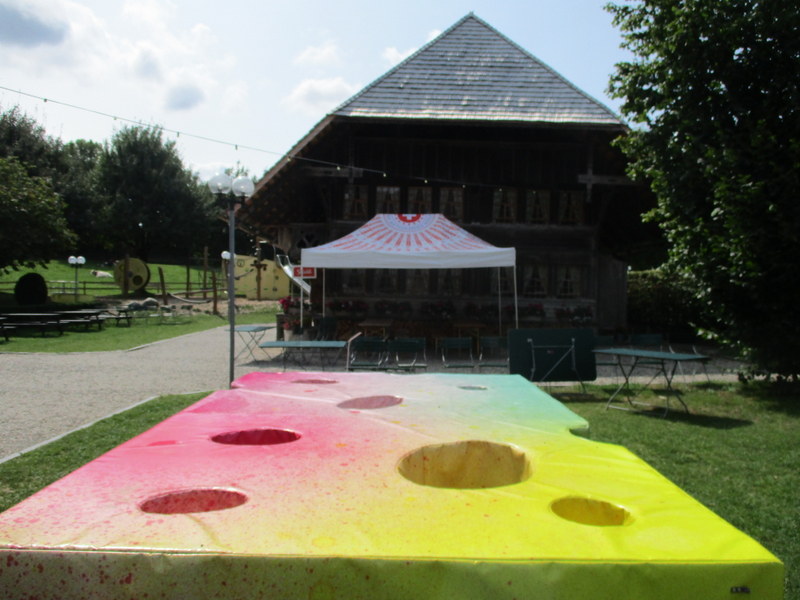 屋外に子供を遊ばせておける一角と(エメンタールチーズはこの穴が特徴ですよね)、テーブルとベンチがあったのでこちらで昼食休憩。