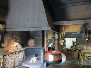 ハイジの世界でもお馴染み牛乳をひたすら煮込む大きな釜と大量の薪