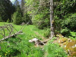 道を下り切った所で左に行く道があり、これがスイス側へ入る道