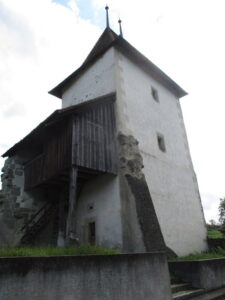 しかしローザンヌの司教と周囲を治める諸侯との間の紛争から、Villarzelの城壁町(小さいけど)は何度も焼かれ、現在残るのは塔と教会のみ。塔はベルンがVaud州を統治していた時代には牢獄、Vaud州が独立した1802年以降は、貧民向け住居として使われるも現在は入場不可。現地に歴史解説板あります。