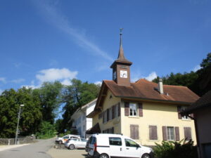 相当古そうな形状の教会!塔に鐘が直にぶら下がってます。鐘はVaud州の教会で最も古いもの。この教会では1910年に、州で初めて女性に牧師任命の投票が許可されました。