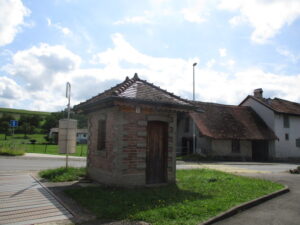 Henniezの町の東にある谷沿いの森には「Anciens Bains」と書かれており(最初の地図)、温泉?の跡があったのかと思いましたが特に何も発見できず。Henniezはミネラルウォーターで名が知られており、Pavillons des sources(源泉)の表記も地図上にありますが、こちらも特に分からないまま通り過ぎました。