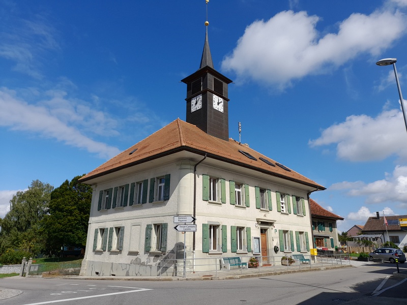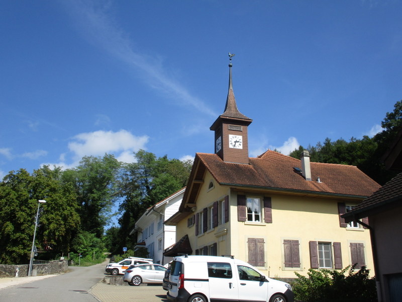 Villarzel(標高622m)から谷沿いの道を下りるとMarnand(標高477m、現在は合併してValbroye)。こちらの学校も現在は民家の様相。