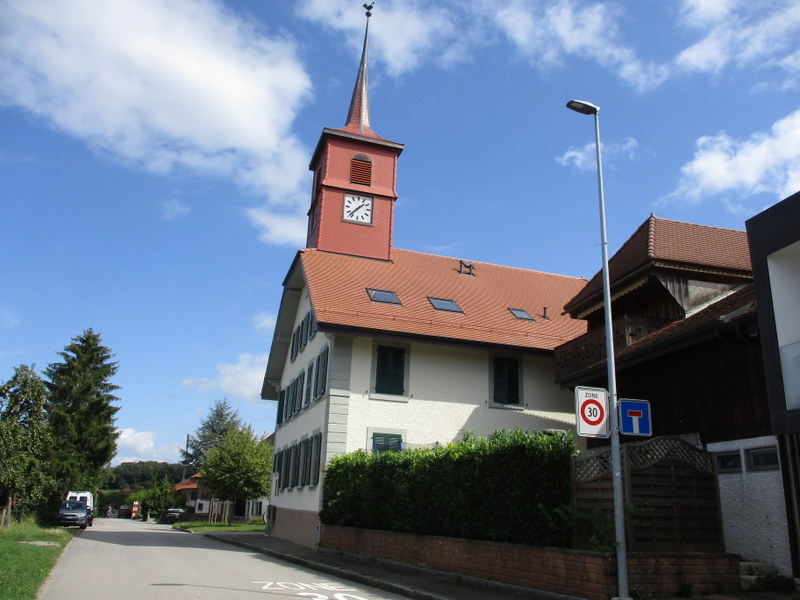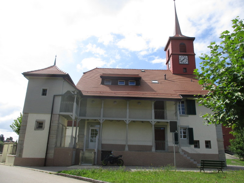 相当古そうな形状の教会!塔に鐘が直にぶら下がってます。鐘はVaud州の教会で最も古いもの。この教会では1910年に、州で初めて女性に牧師任命の投票が許可されました。