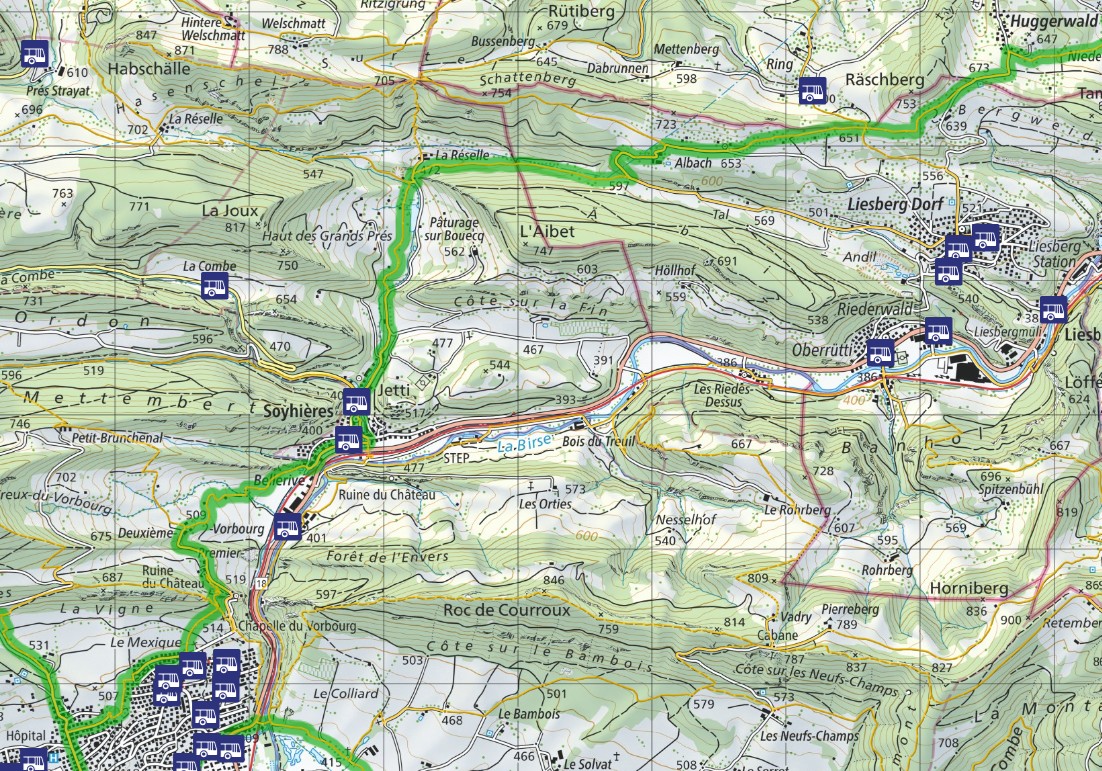 やがて流れがBirs川に注ぎ込む流域にSoyieresの町が形成されています。あ、ドイツ語圏でのBirs川はフランス語ではLa Birseと呼ばれています。
