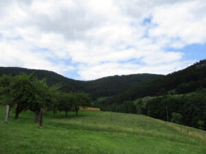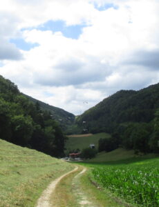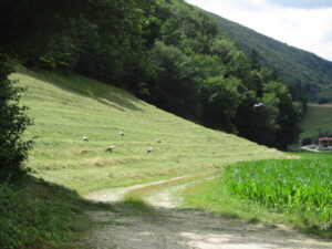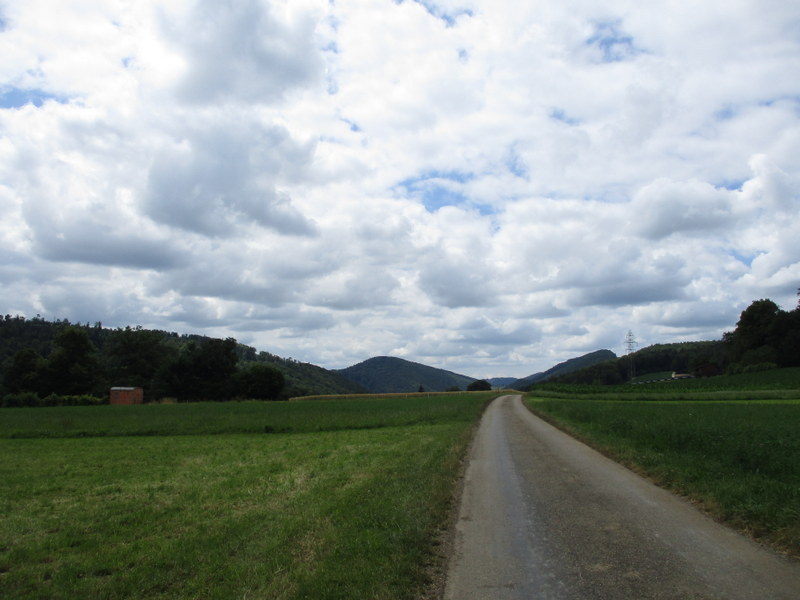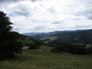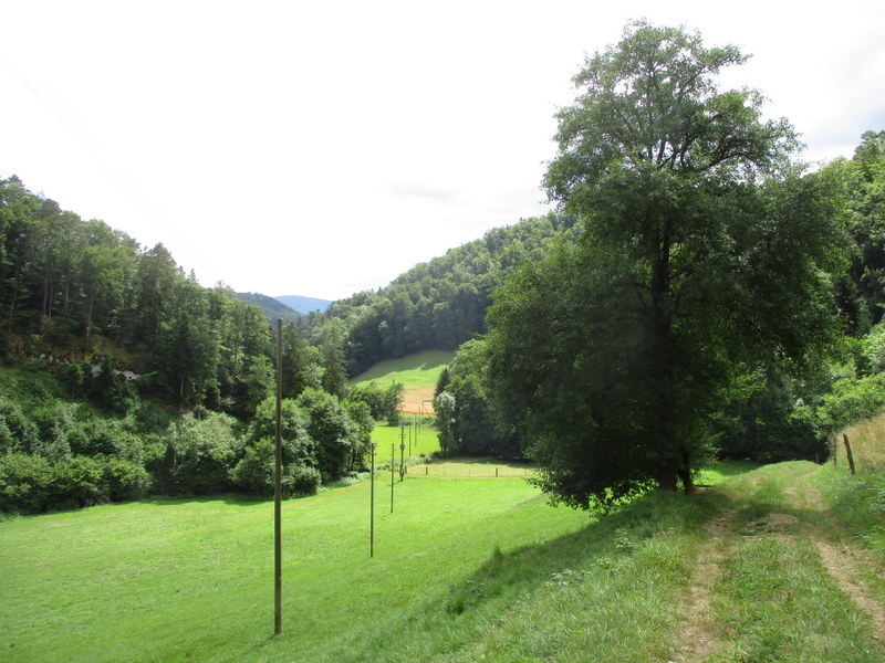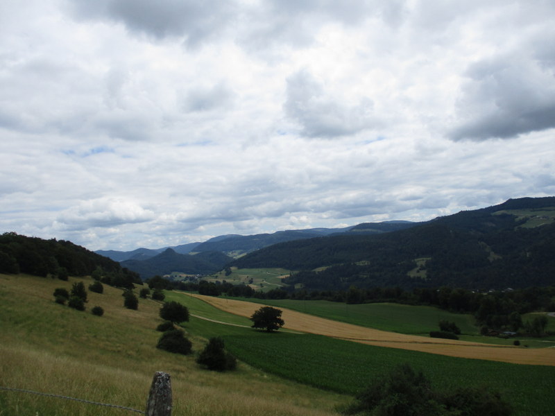 標高522m、ジュラ州との州境の手前、左奥の斜面をよく見ると、