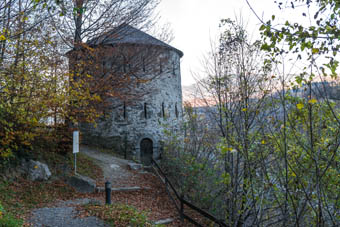 Chateau(城) de St-Maurice(標高483m)のすぐ右にトンネルの入り口。右上に視線を移すと見張り塔。